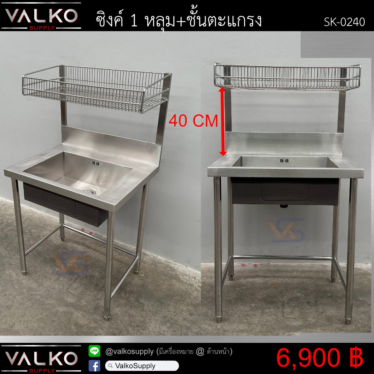 - มีชั้นตะแกรง ขนาด 40x77 cm ระยะตามภาพ เชื่อมติดกับซิงค์