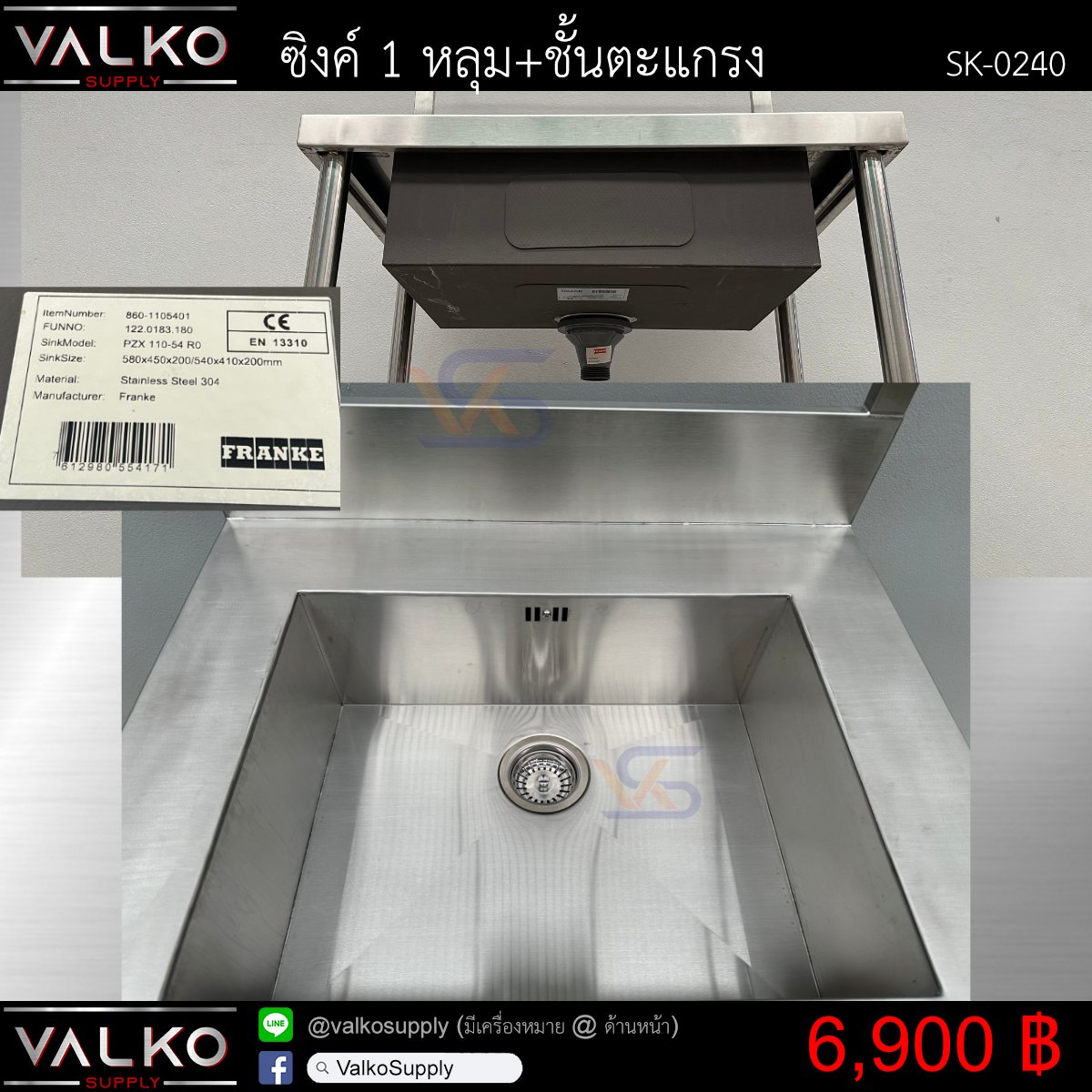 - หลุมซิงค์ FRANKE (ยังไม่ผ่านการใช้งาน) ขนาด 41x54x20 cm (ท่อน้ำทิ้ง 1 1/2") บริการเจาะรูสำหรับใส่ก๊อกให้