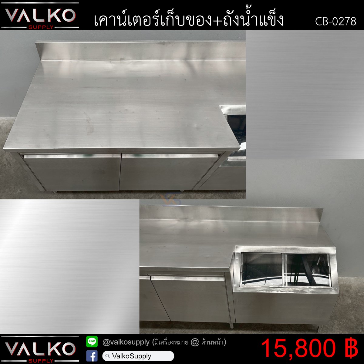 เคาน์เตอร์เก็บของ+ถังน้ำแข็ง 75x195x85+15 cm.