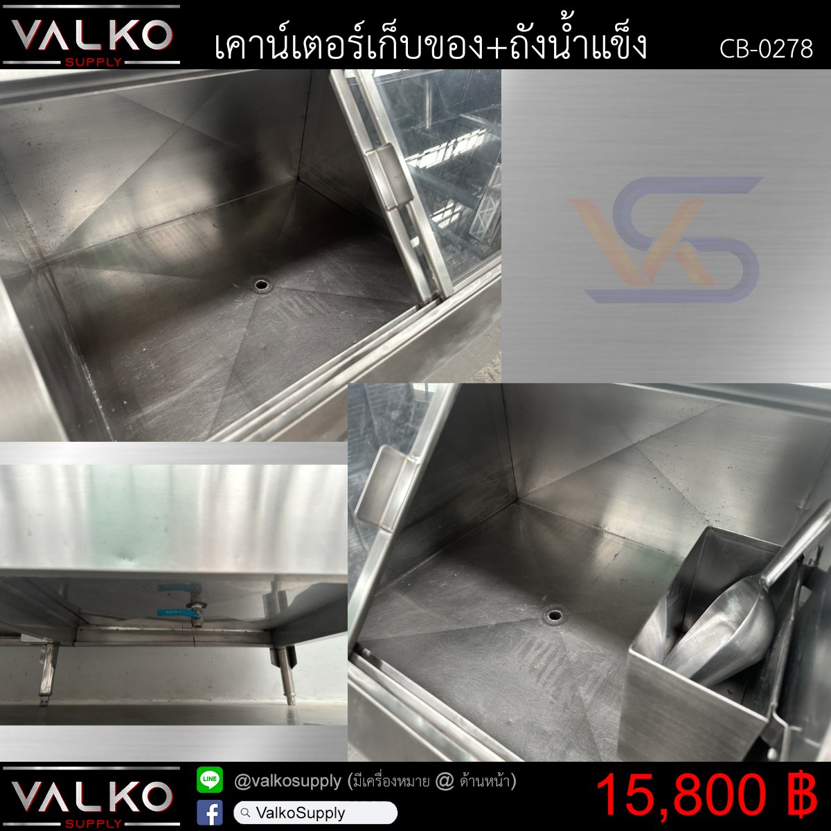 - ด้านขวาเป็นถังน้ำแข็ง บานอะคลิลิก 150 ลิตร (4 กระสอบ) มีวาล์วระบายน้ำ